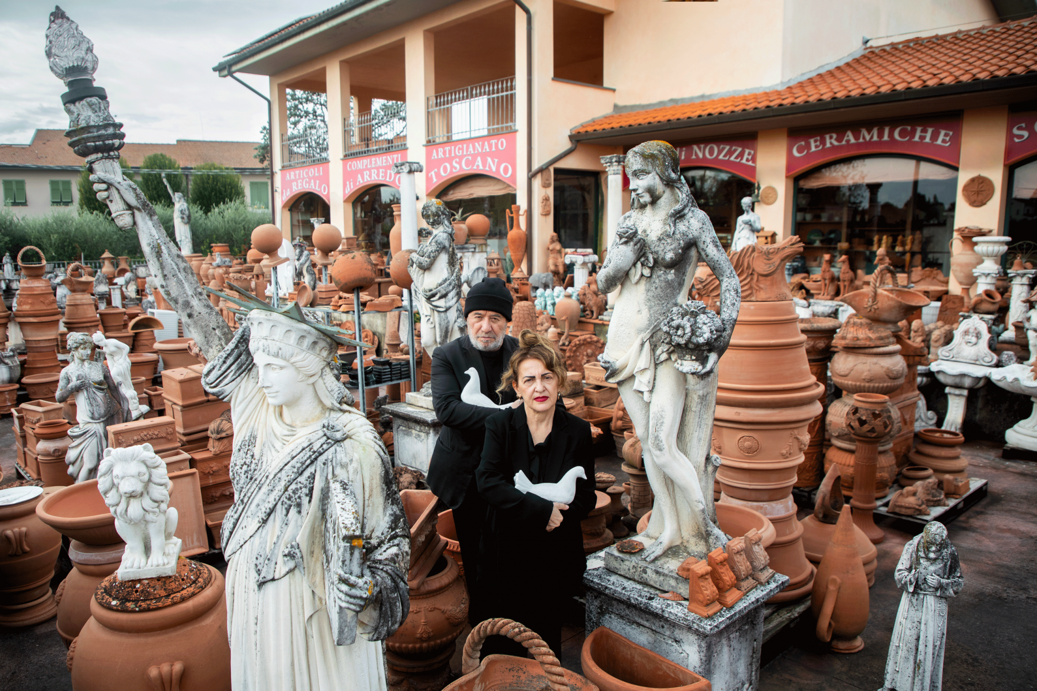 Simeone Crispino and Stella Scala, better known as Vedovamazzei, live and work in Milan. Complex and highly prolific artists, they cannot be categorized into a specific theme, formal style, or a single working method. Their corpus of over 900 works attests to continuous, sometimes extraordinary, but also daily work, born from the never-resting dialogue between their two minds. The images they produce, from sketches on paper to giant installations that have traveled the world, have the power to imprint themselves deeply in the minds of viewers. By shunning both purity of form and content and the pure burst of intelligence, Vedovamazzei use irony in a visceral way, presenting their bodily reflections, exposing all the excessiveness that distinguishes them, tackling universal themes without stepping back.
